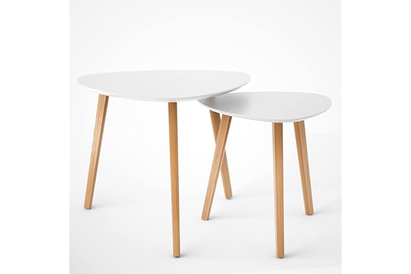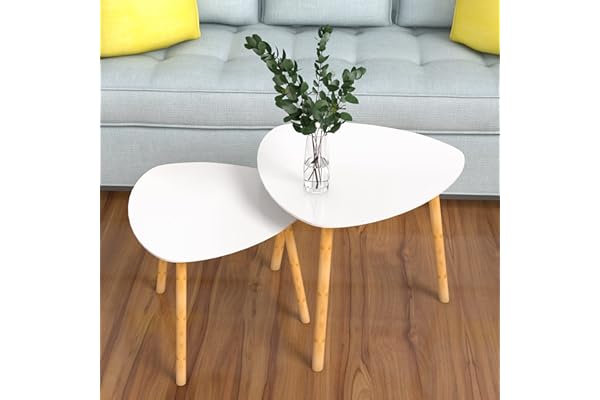 Set of 2 Coffee Table Modern Minimalist Side Table for Living Room, Balcony in White