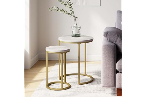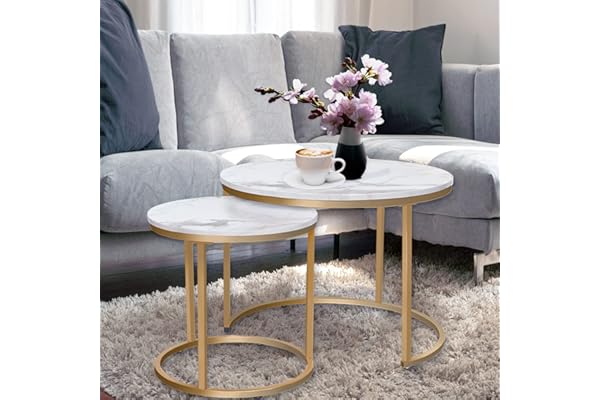 White Marble Nesting Coffee Table for Small Place 2 Sets Modern Furniture Living Room Sets End Side Table Night Stand for Bed Room Dining Room Garden 4 you