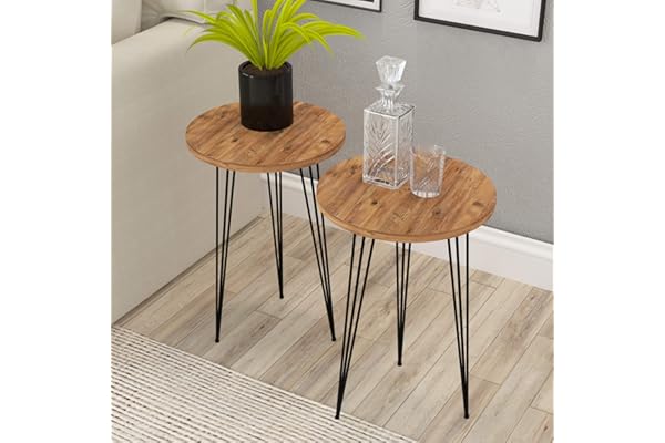 PAK HOME Round Wood Stacking Coffee Side Accent Table with Metal Legs for Living Room, Home Office, Nightstands for Bedroom