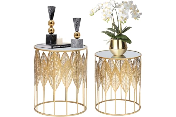 Gold Nesting Side Coffee Table Decorative Round Nightstands (Stainless Steel Top)