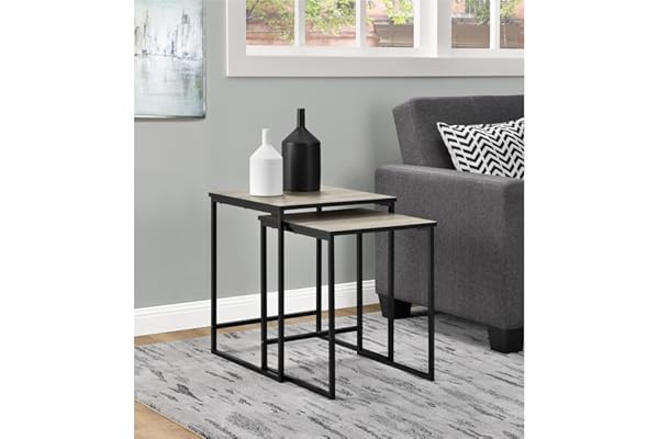 Stacking Living Room Accent Tables with an Industrial Wood Finish and Powder Coated Metal Frame, Warm Nutmeg/Matte Black