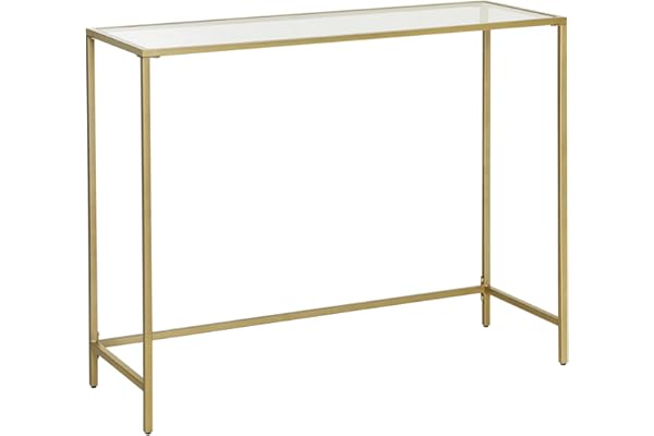 Tempered Glass Sofa Table, Modern Entryway Table, Metal Frame, Easy to Assemble, Adjustable Feet, for Living Room, Hallway, Gold Color ULGT26G