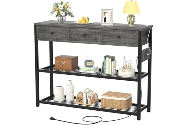 Console Table with 3 Drawers, Sofa Table Narrow Long with Storage Shelves for Living Room, Couch, Hallway, Foyer, Kitchen Counter, Grey