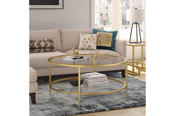 Sivil 36'' Wide Round Coffee Table with Glass Top in Brass