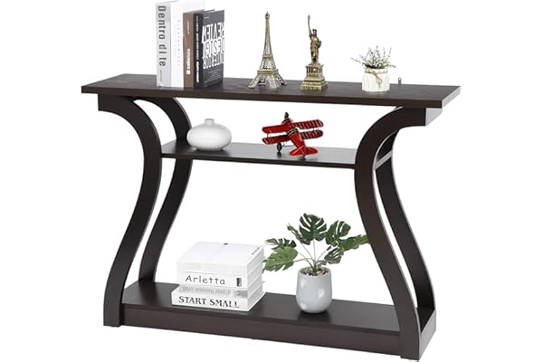3 Tier Modern Accent Sofa Table for Entrywaty, Living Room, Hallway, 47 in Wide, Easy Assembly (Cappuccino/Dark Brown)