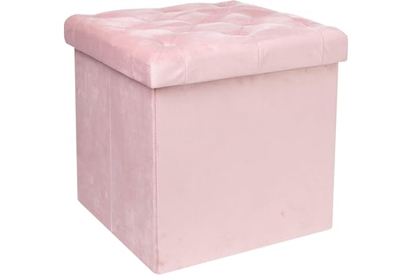 Velvet Tufted Folding Ottomans with Lid, Footstool Rest Padded Seat for Bedroom (Pink, Medium)