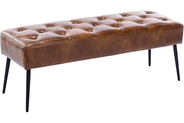 Upholstered Bedroom Benches Leather Footrest Stool Accent Bench for Entryway Dining Room Living Room Bedroom End of Bed, Yellowish Brown