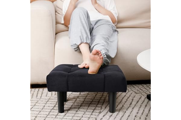Velvet Soft Footrest Ottoman with Wood Legs,Sofa Footrest Extra Seating for Living Room Entryway Office(Black 1PACK)