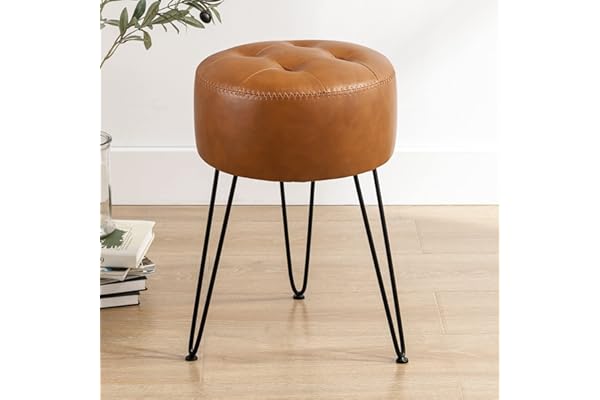 LUE BONA Small Vanity Stool Chair for Makeup Room, Brown Stool for Vanity