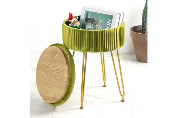 Vanity Stool with Gold Legs,18” Height, Small Storage Ottoman Foot Ottoman Rest for Living Room, Bathroom, Green