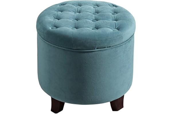 Velvet Button Tufted Ottoman with Removable Lid, Teal