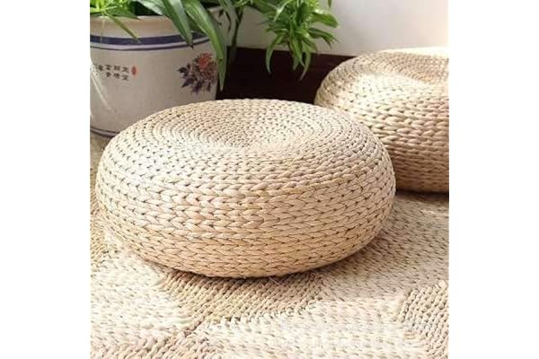 Handmade Floor Pouf Mat, Ottoman Footstool for Meditation, Zen, Yoga Practice or Buddha (15.7" Dia. x 6.3" H)