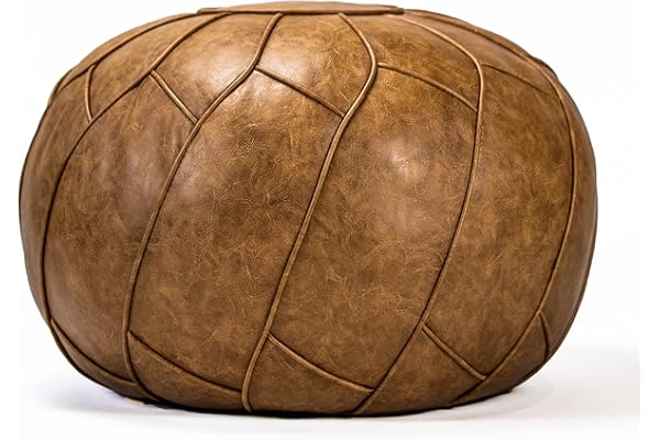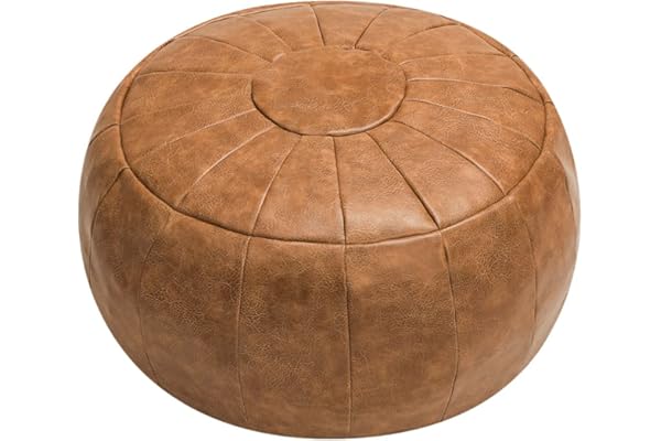 Thgonwid Unstuffed Faux Leather Pouf Cover, Handmade Footstool Ottoman Storage Solution, Floor Footrest Cushion