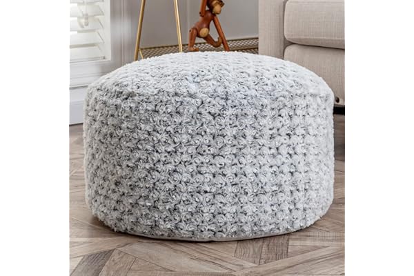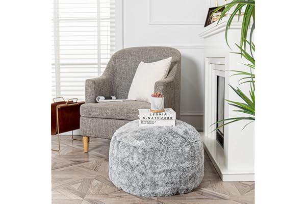 Grey Ottoman Foot Rest(NO Filler) Pouf Cover Unstuffed Floor Pouf Ottoman 20x20x12 Inches Round Pouf Seat Floor Bean Bag Chair Foldable Floor Chair Storage for Living Room Bedroom Cover ONLY