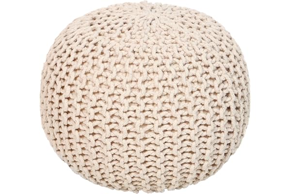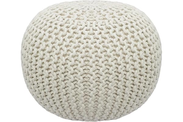 Frelish Decor Round Pouf Ottoman Hand Knitted Cotton Pouf Footrest,Foot Stool, Knit Bean Bag Floor Chair for Bed Room Living