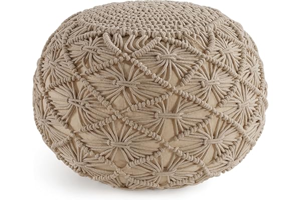 REDEARTH Round Pouf Ottoman-Cable Knitted Boho Poof