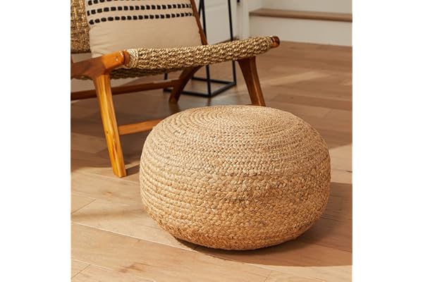 Decor Therapy Round Braided Natural Jute Woven Pouf Ottoman
