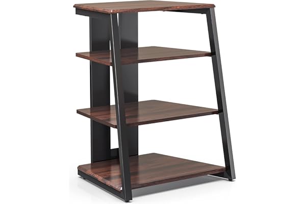 FITUEYES Design 4-Tier AV Media Stand Corner Shelf Stand Wooden Corner Shelves Component Cabinet Stereo Rack Audio Tower with Height Adjustable Wooden Shelves for /Apple Tv/Xbox One/ps4 (Walnut)