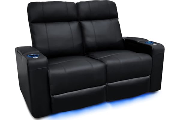 Premium Top Grain Nappa 9000 Leather, Power Recliner, LED Lighting (Row of 2 Loveseat, Black)