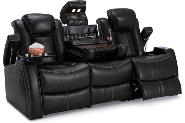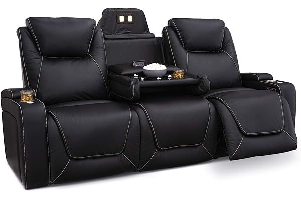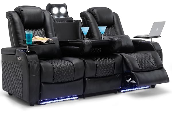 Movie Theater Decor Theater Chairs Seats with Tray Table, Front Pocket, Touch Reading Lights, Lumbar Support, Ambient Lighting, Center Drop Down Console, Row of 3 Black
