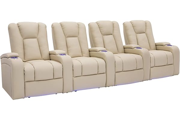 Power Recline - Tray Tables - in-Arm Storage - Ambient Base Lighting and Lighted Cupholders (Row of 4, Vanilla)