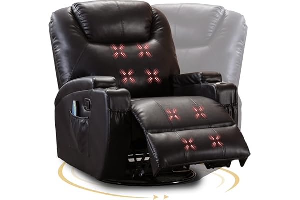 HZLAGM Swivel Rocker Recliner Chair with Vibration Massage, Rocking Recliner with 360° Swivel, Side Pockets and 2 Cup Holders, Breathable Leather Recliner Suitable for Living Room