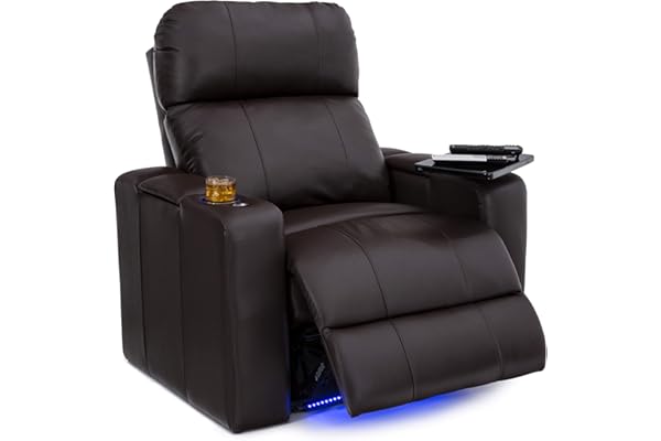 Big & Tall - Home Theater Seating - 400 lbs Capacity - Top Grain Leather - Power Recliner - Powered Headrest and Lumbar - Cupholders - Arm Storage, Brown