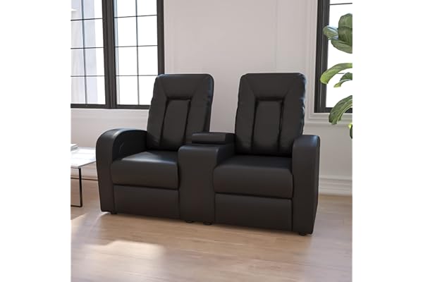 Flash Furniture Eclipse Series 2-Seat Reclining Black LeatherSoft Theater Seating Unit with Cup Holders