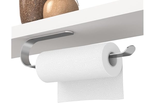Hurran Adhesive Paper Towel Holder Sliver Under Cabinet, Countertop, Self-Adhesive Hanging or Drilling Wall Mounted Paper Towels Rolls Holder for Bathroom Kitchen