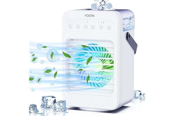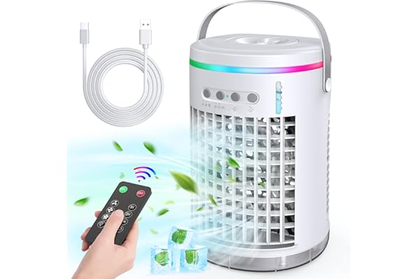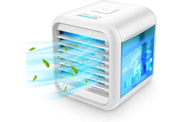 Personal Air Conditioner with Icebox, Personal Air Cooler 3 Speeds, Evaporative Air Cooler for Home, Office, Camping & Outdoor, Mini Portable AC with 7 Colors Lights, USB Charging, Quiet