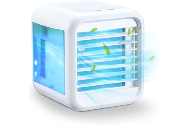 Personal Air Cooler with Icebox, USB Desk Fan with 3 Speeds, Evaporative Air Cooler for Home, Office & Outdoor Use, Mini Air Cooler, USB Charging, 7 Light Colors, Quiet