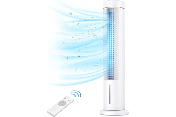 Portable Air Conditioner with 8H Timer, Instant Cool & Humidify with 3 Speeds & Modes, 3 In 1 Room Air Conditioner with Remote Control, Bladeless Tower fan for Room Office