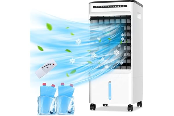 40” Cooling Fan with 80° Oscillating, Humidifying, Removable Water Tank, Filter, Ice Packs, Remote Control, 3 Speeds, 7H Timer, Personal Swamp Cooler for Room Home Office