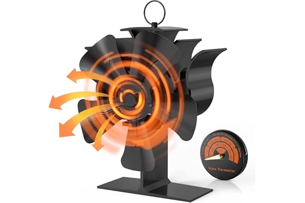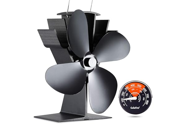 GALAFIRE 4-Blades Heat Powered Wood Stove Fan + Magnetic Thermometer