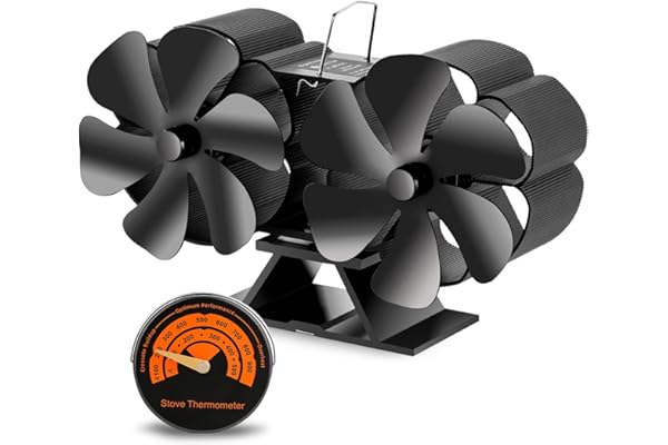 12 Blade Fireplace Fan Non-Electric, Thermoelectric Fan EcoFan for Wood Burning Stove/Pellet/Log Burner (with Accessories Magnetic Thermometer), Dual Motors