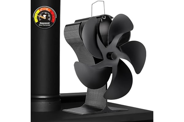 Fireplace Fan for Wood Burning Stove, Heat Powered fan, Wood Stove Accessories, Quiet Operation Circulating Warm Air, (Include Magnetic Thermometer) (5-Blade)