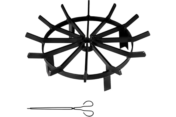 Amagabeli 12in Fire Grate Log Grate Wrought Iron Fire Pit Round Spider Wagon Wheel Firewood Heavy Duty 0.7in Bar Fireplace Stove Burning Rack Holder 4Legs Chimney Hearth Kindling Stacking BG432