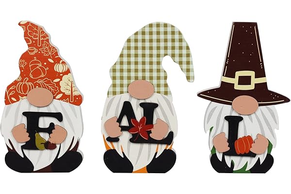 Large Size 3 Pack Gnomes Wood Block Set with Fall Lettered for Fall Decor, Decorative Autumn Sign Centerpieces for Living Room, Table, Shelf, Mantel, Thanksgiving