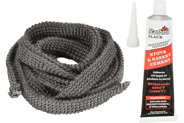 Stanbroil Graphite Impregnated Fiberglass Flat Rope Seal and High Temperature Cement Gasket Kit Replacement for Wood Stoves