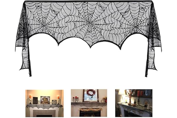 Black Lace Spiderweb Fireplace Mantel Scarf Cover Garland for Festive Party Supplies Decor 18 x 98 inch (Black)
