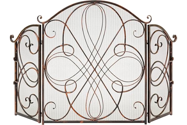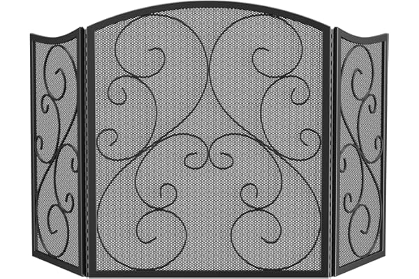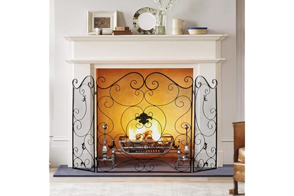 Fire Beauty Fireplace Screen 3 Panel Wrought Iron 48"(L) x 29"(H) Spark Guard Cover(Black)
