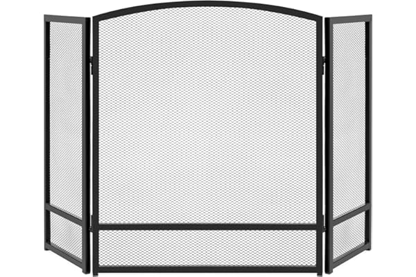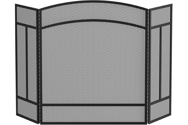 BEAMNOVA Black Fireplace Screen 125x79.5 cm 49x31 Inch 3 Panel Flat Cover Modern Rustic Vintage Arched Mesh Outdoor Freestanding Iron Protector