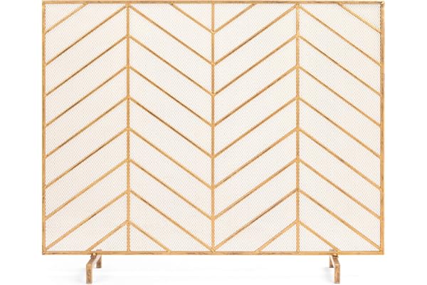 Best Choice Products 38x31in Single Panel Handcrafted Wrought Iron Mesh Chevron Fireplace Screen, Fire Spark Guard for Living Room, Bedroom Décor w/Distressed Antique Finish