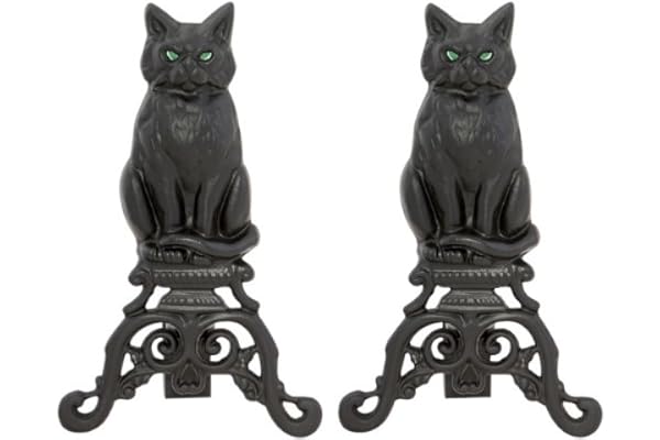 A-1251, Black Cast Iron Cat Andirons with Reflective Glass Eyes