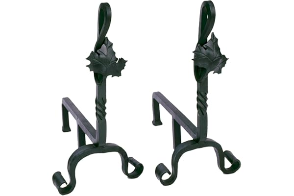 Minuteman International Maple Leaf Wrought Iron Fireplace andirons