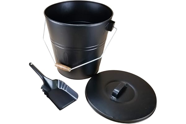 Carver's Olde Iron Black Ash Bucket fireplace w/ shovel and lid 14" tall x 13" across top
