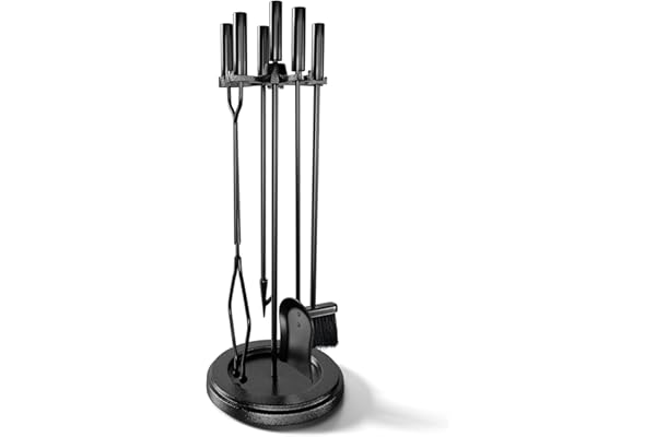 Fire Beauty 5 Pieces Fireplace Tools Set Wrought Iron Fire Place Pit Poker Holder(Black)