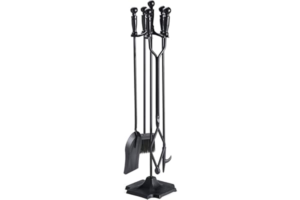 FireBeauty Fireplace Tools Set 5 Pieces Wrought Iron Fire Place Pit Poker Holder 31" H (Black)