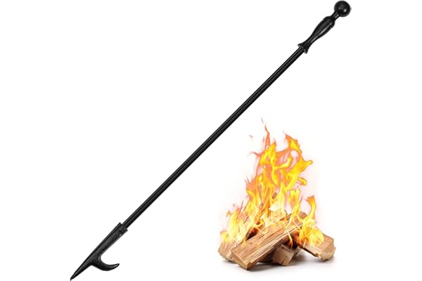 Amagabeli Fireplace Poker Fire Poker 26 Inch for Fire Pit Wood Stove Heavy Duty Wrought Iron Solid Steel Poker Indoor and Outdoor Campfire BBQ Rustproof Fireplace Tool Accesories Black