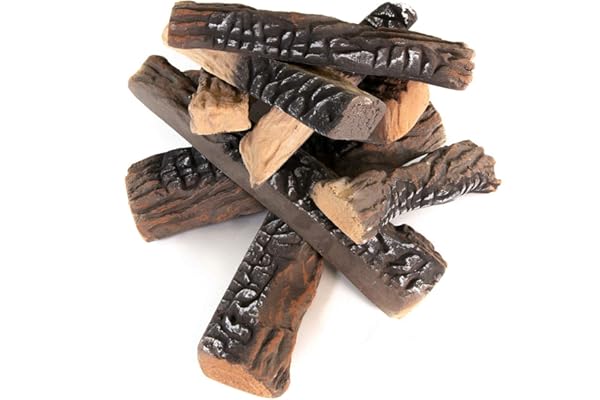 Barton 10Pc Ceramic Log Set Petite Wood Style w/Stackable Gas Heat Resistant Outdoor Indoor Fireplace Fire Wood Fake Realistic